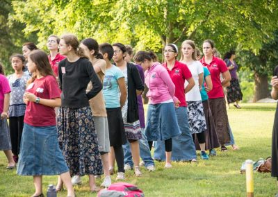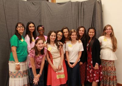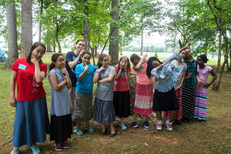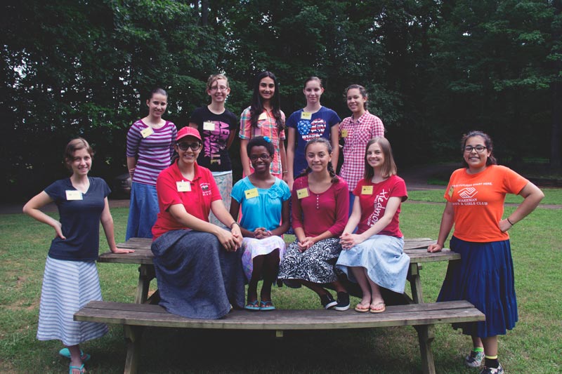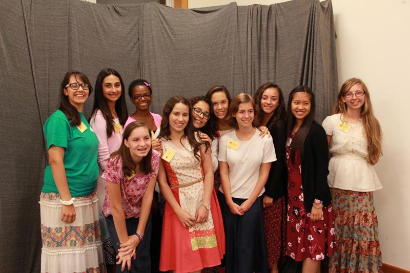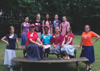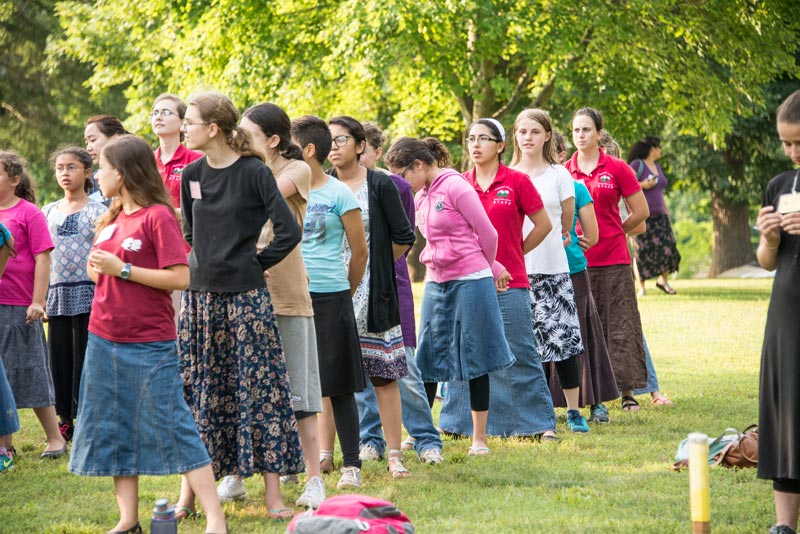 Especially for Girls: Everyday wear for most camp activities is modest skirts and dresses. Skirts should cover the knee when standing or sitting, and allow a full stride. Slits must end below the knee. Tops must be long enough to cover bare skin when reaching or bending over. For designated activities, fingertip-length tops or tunics over pants are acceptable.